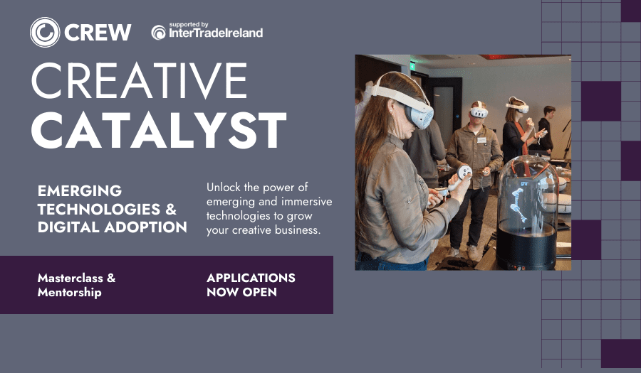 CREW is a leading innovation hub dedicated to growing the digital creative industries in the West and North-West of Ireland. We provide essential infrastructure, training, mentorship, and networking opportunities to entrepreneurs, startups, and scale-ups in sectors such as film, animation, game development, design, and digital arts.