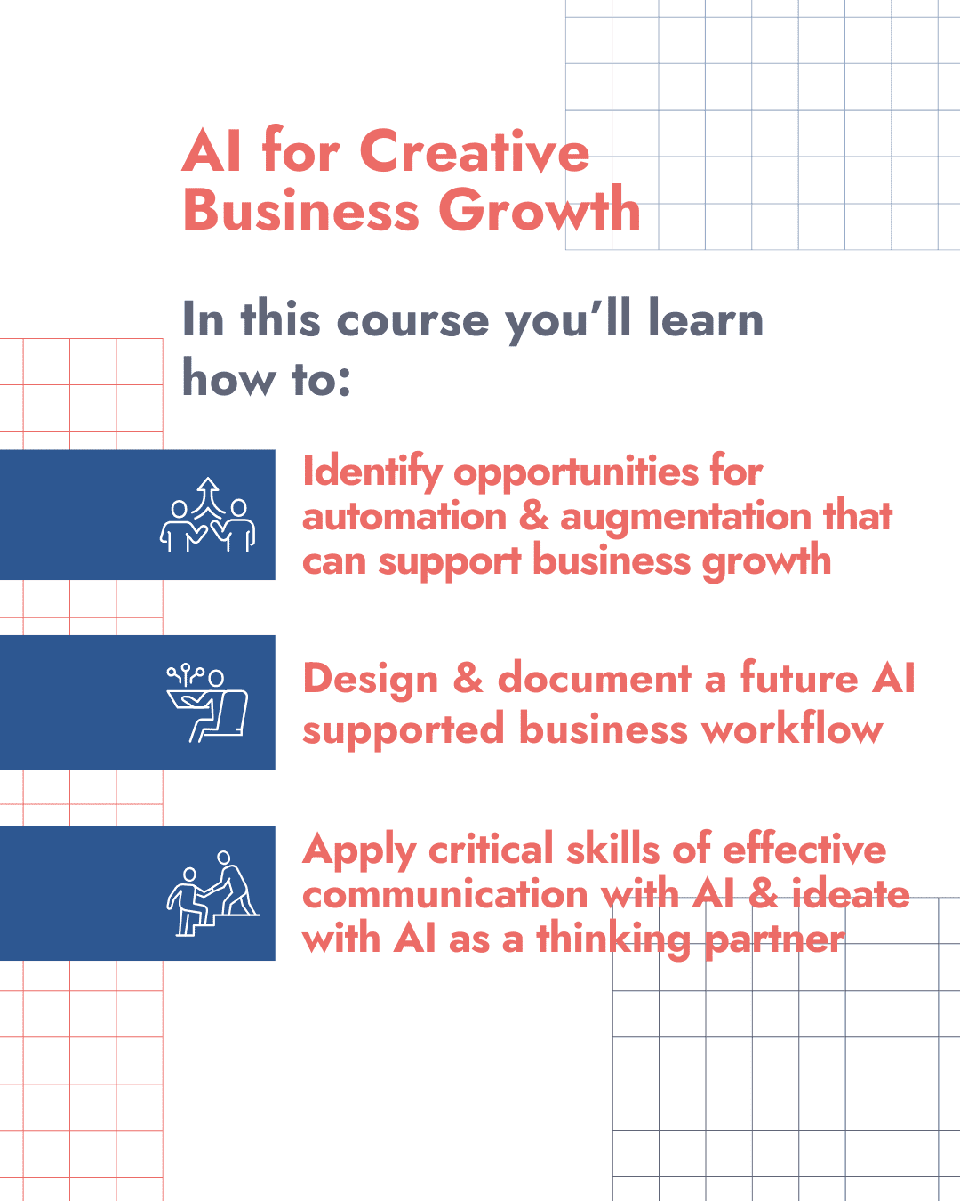 AI for Creative Business Growth is an outcomes‑driven online course that helps creative entrepreneurs leverage AI to standardize, refine and scale their business processes and grow their practice.