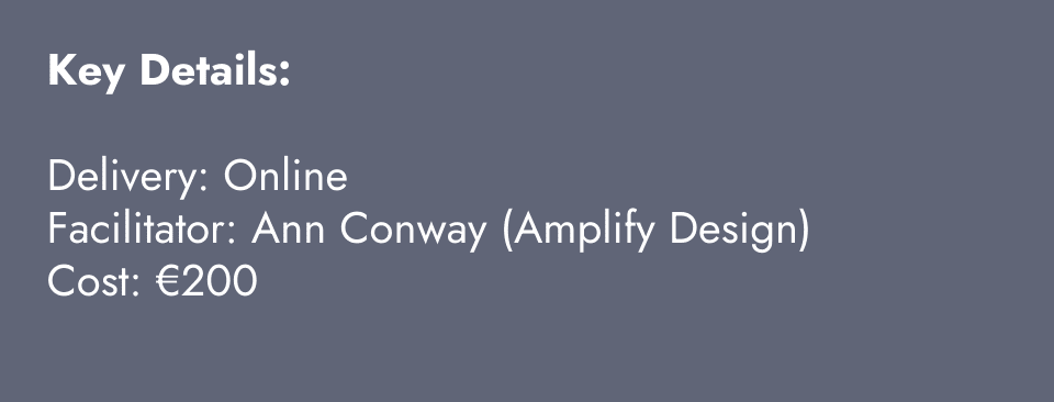 The course is being offered to the SME at 20% of the market rate (the full programme is valued at €1000) with the remaining 80% supported by Enterprise Ireland Smart Region scheme. In order to avail of this discounted rate, all applicants are asked to confirm that they have the appropriate De Minimis balance to accept the support. More information on De Minimums State Aid can be found here: State Aid | Enterprise Ireland