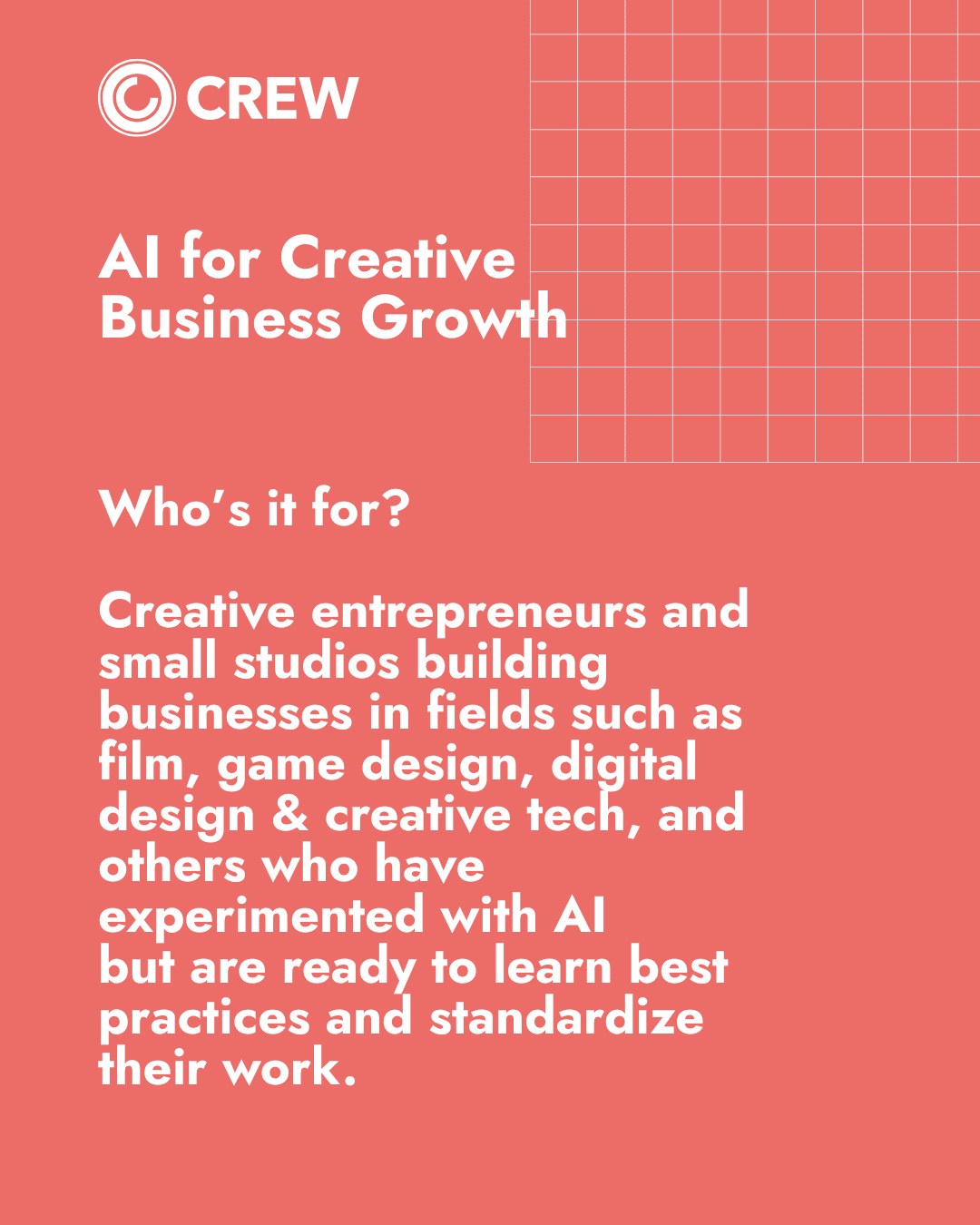CREW’s CLIMB Course, AI for Creative Business Growth is now accepting applications.