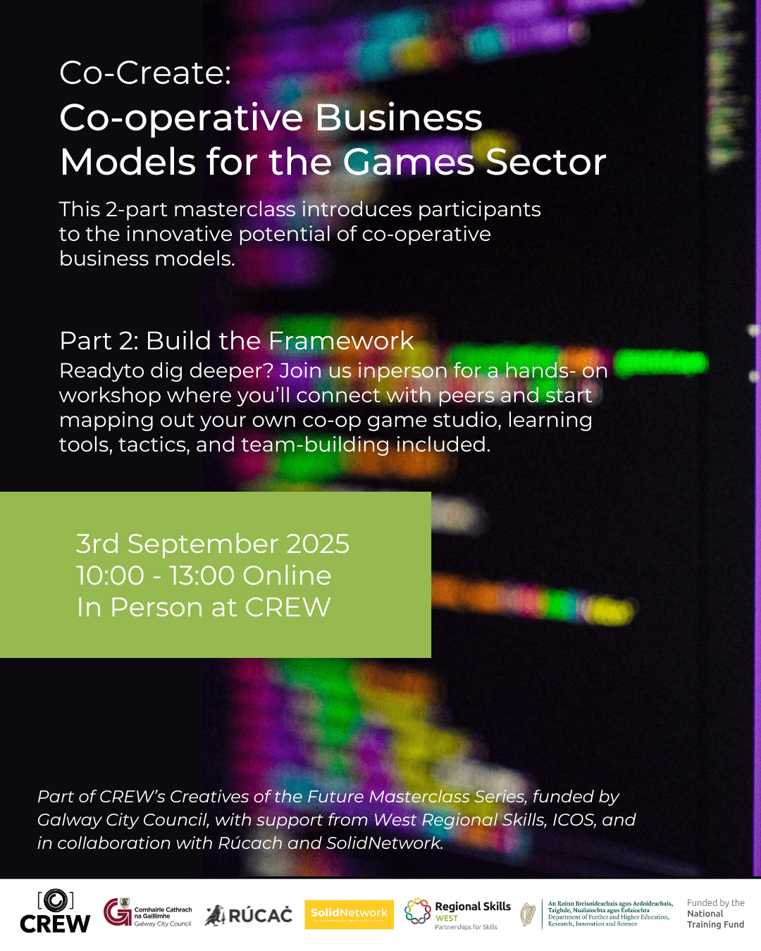 Wednesday, September 3rd | 10:00am–1:00pm | In Person @ CREW, Galway