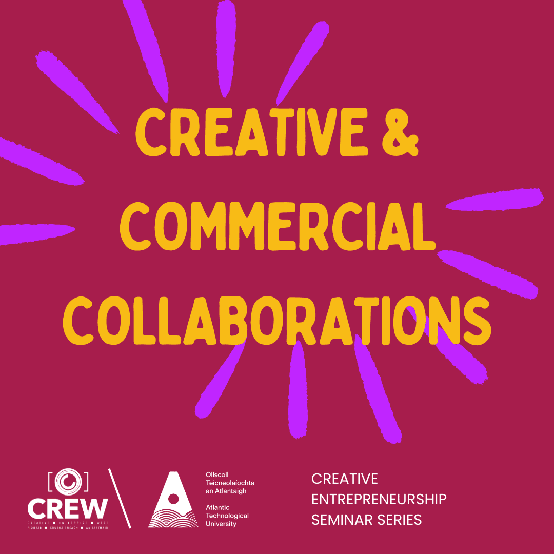 “Creative and Commercial Collaborations” with David Beirne of Bright Potato and The Motleys. In partnership with ATU, the Creative Entrepreneurship Student Programme includes a series of guest speakers sharing insights into their experience in creative entrepreneurship. This series runs from October 2023 – April 2024 and is available to all registered ATU students.