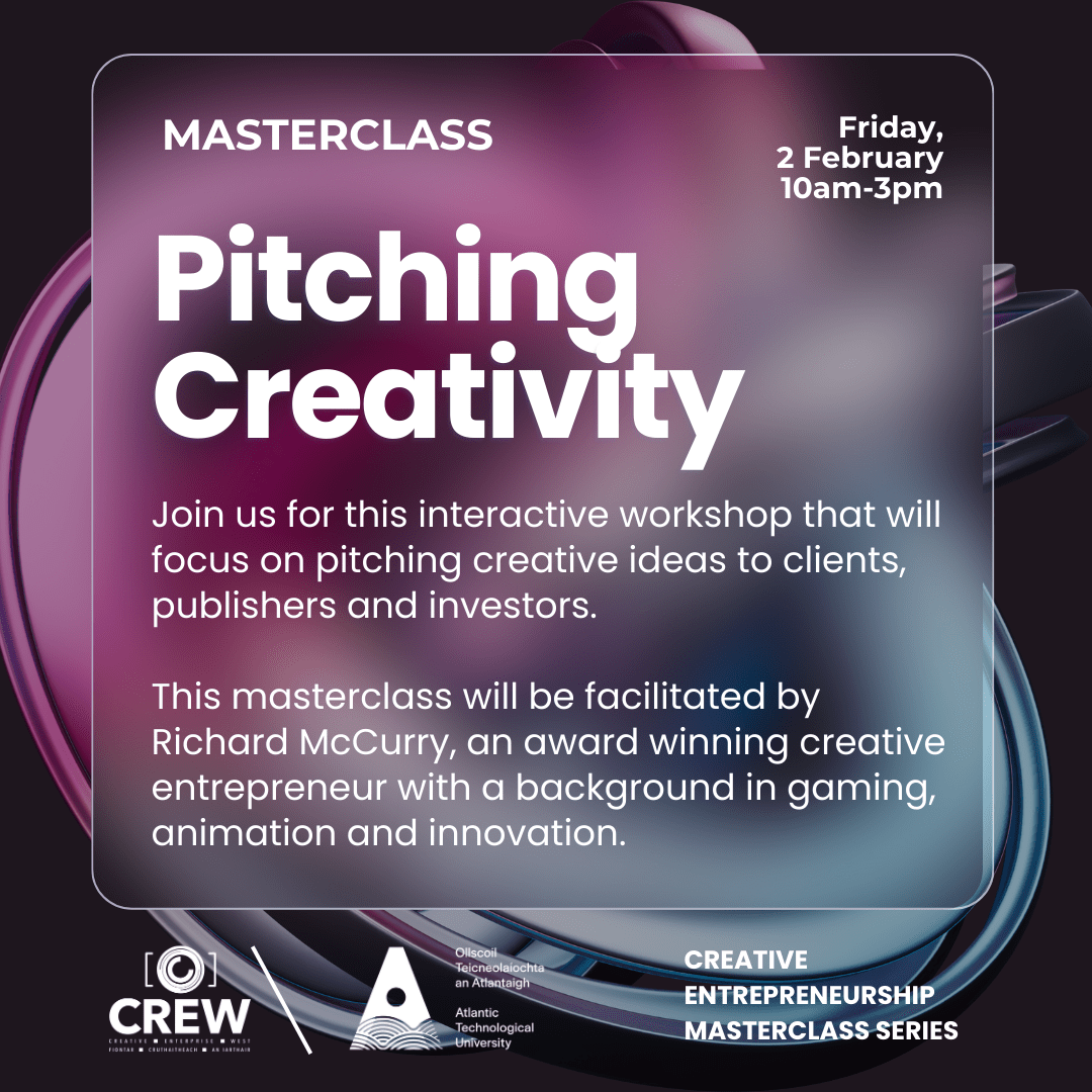 As part of the Creative Entrepreneurship Student Programme, in partnership with ATU, this full day interactive workshop focuses on developing the perfect pitch. This masterclass is available to all registered ATU students.