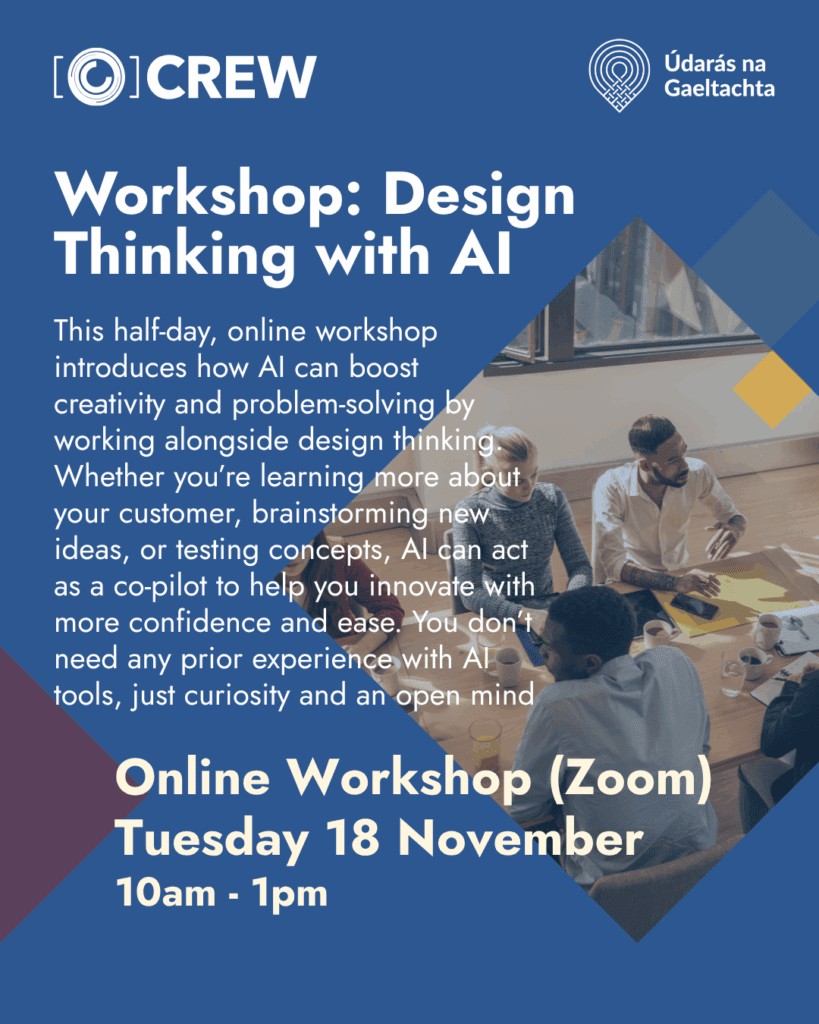 A collaboration with CREW and Udaras na Gaaltachta, this full day workshop, entrepreneurs will learn about the design thinking process, the benefits of creative problem [...]